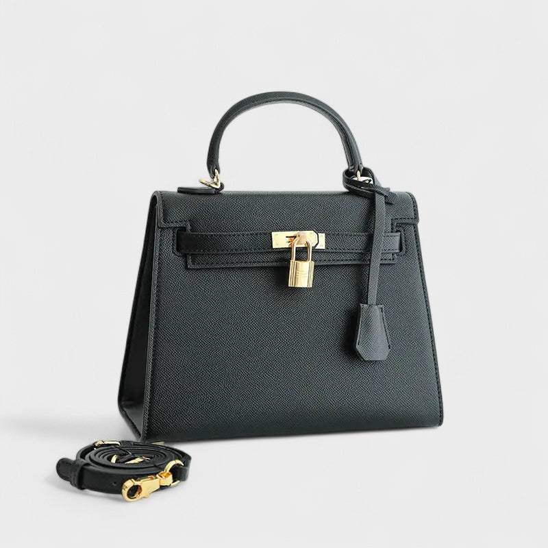 このハンドバッグは、洗練されたシルエットと実用的な機能を組み合わせており、昼夜問わず必要なアイテムです。トップハンドル、ロックディテール、取り外し可能なストラップを備え、エレガンスと多様性を兼ね備えています。