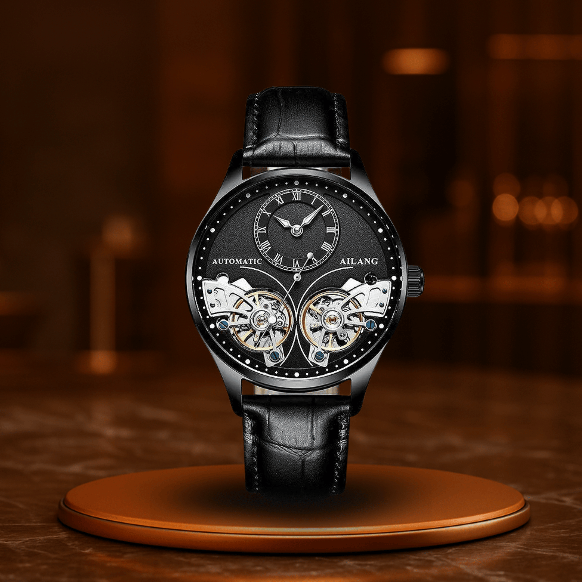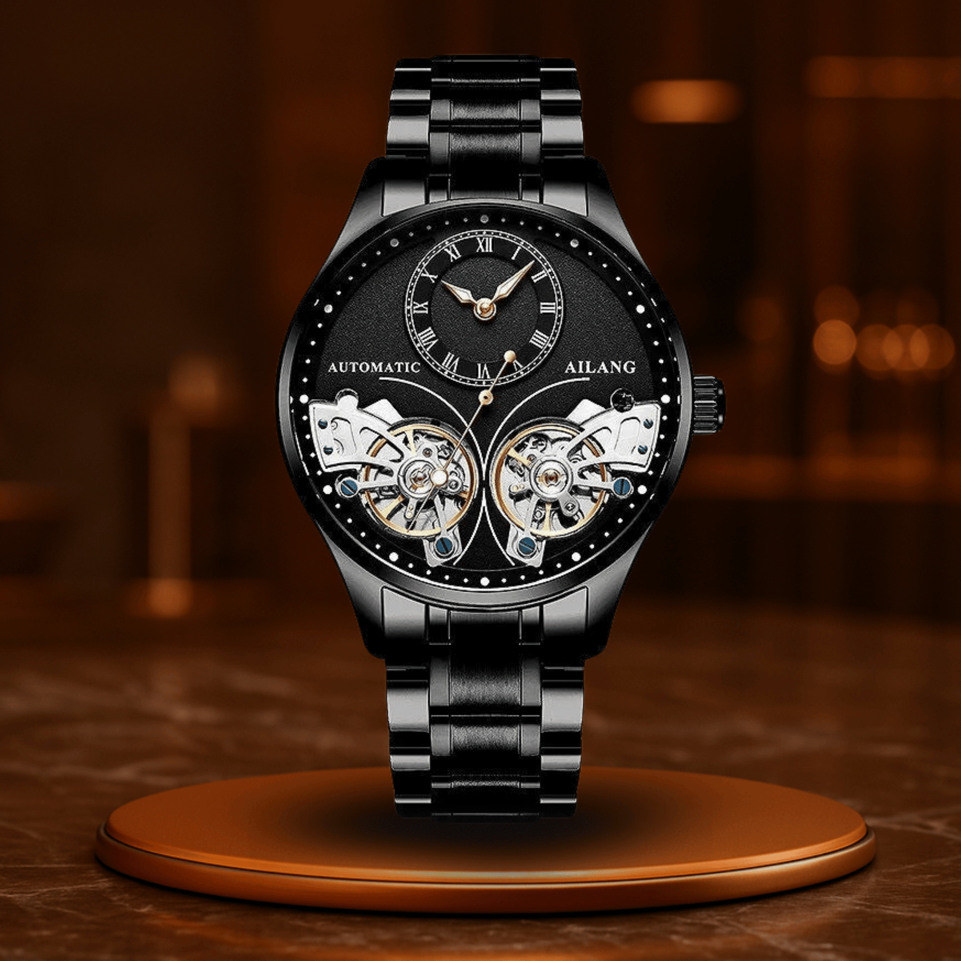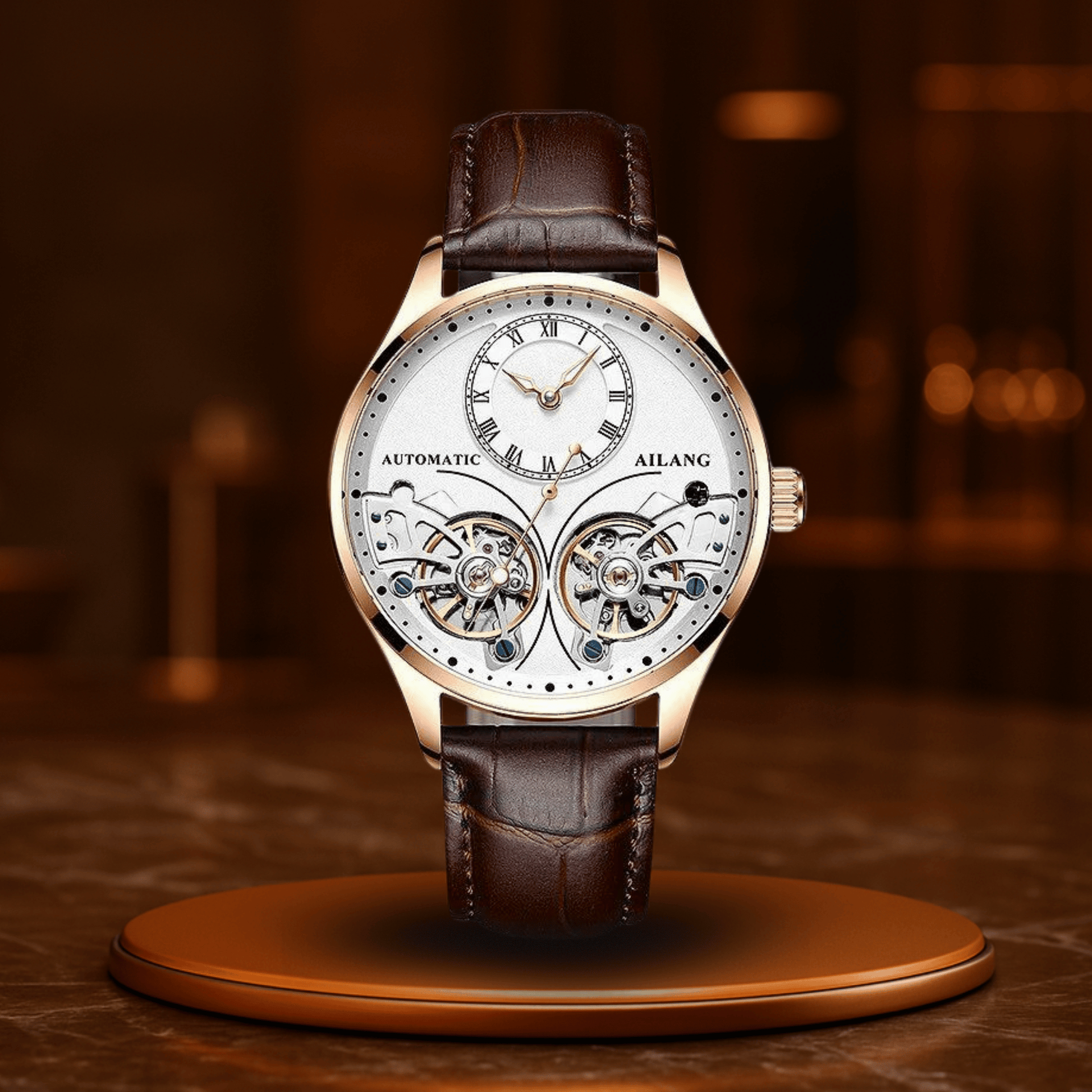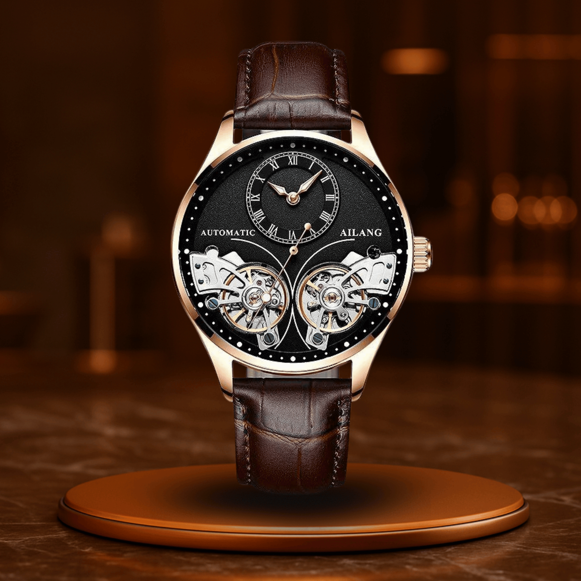 A double-balanced mechanical heartbeat, visible and hypnotic, powered by an automatic movement that draws solely on your energy. No winding. No battery. Only you – and time, passing in its most beautiful form.