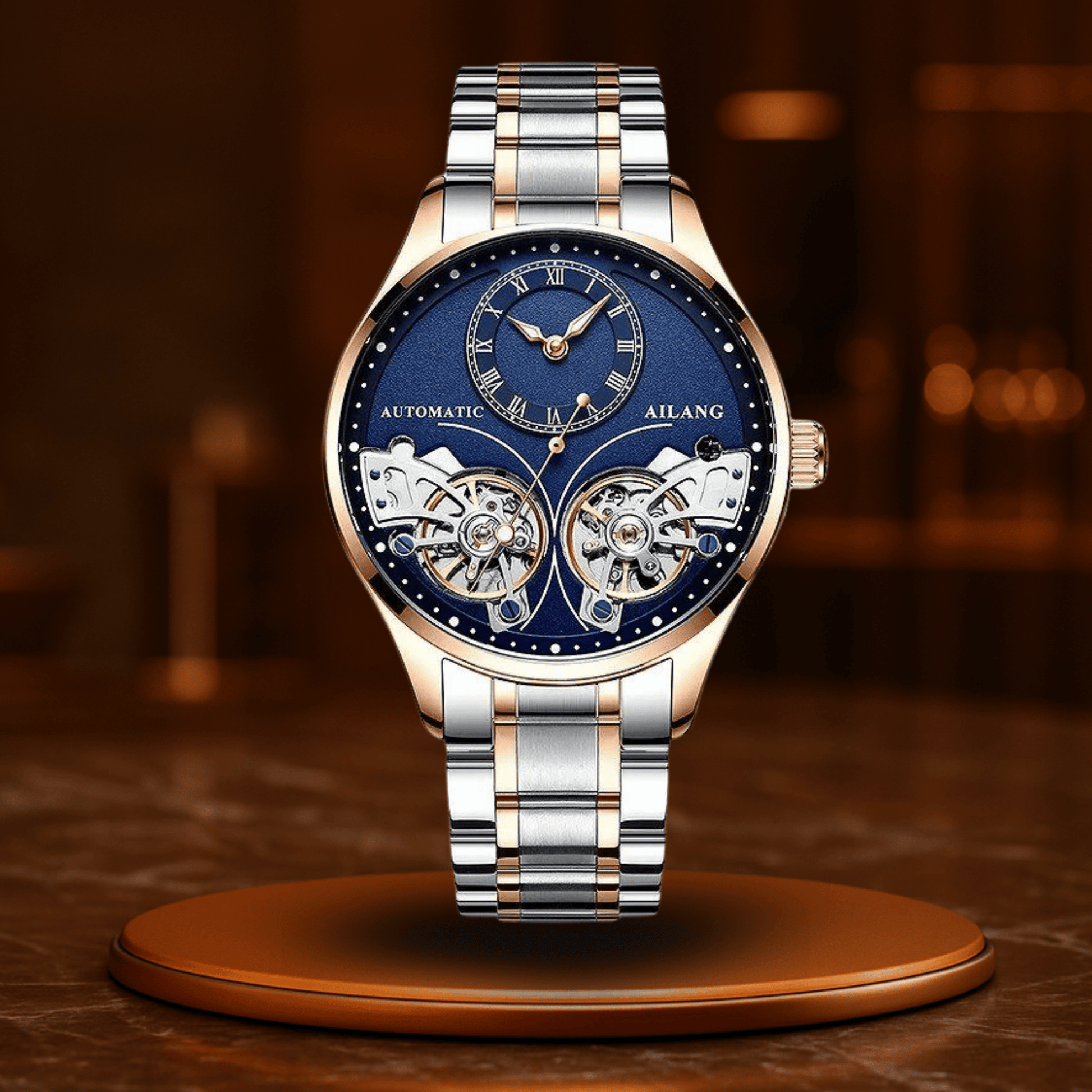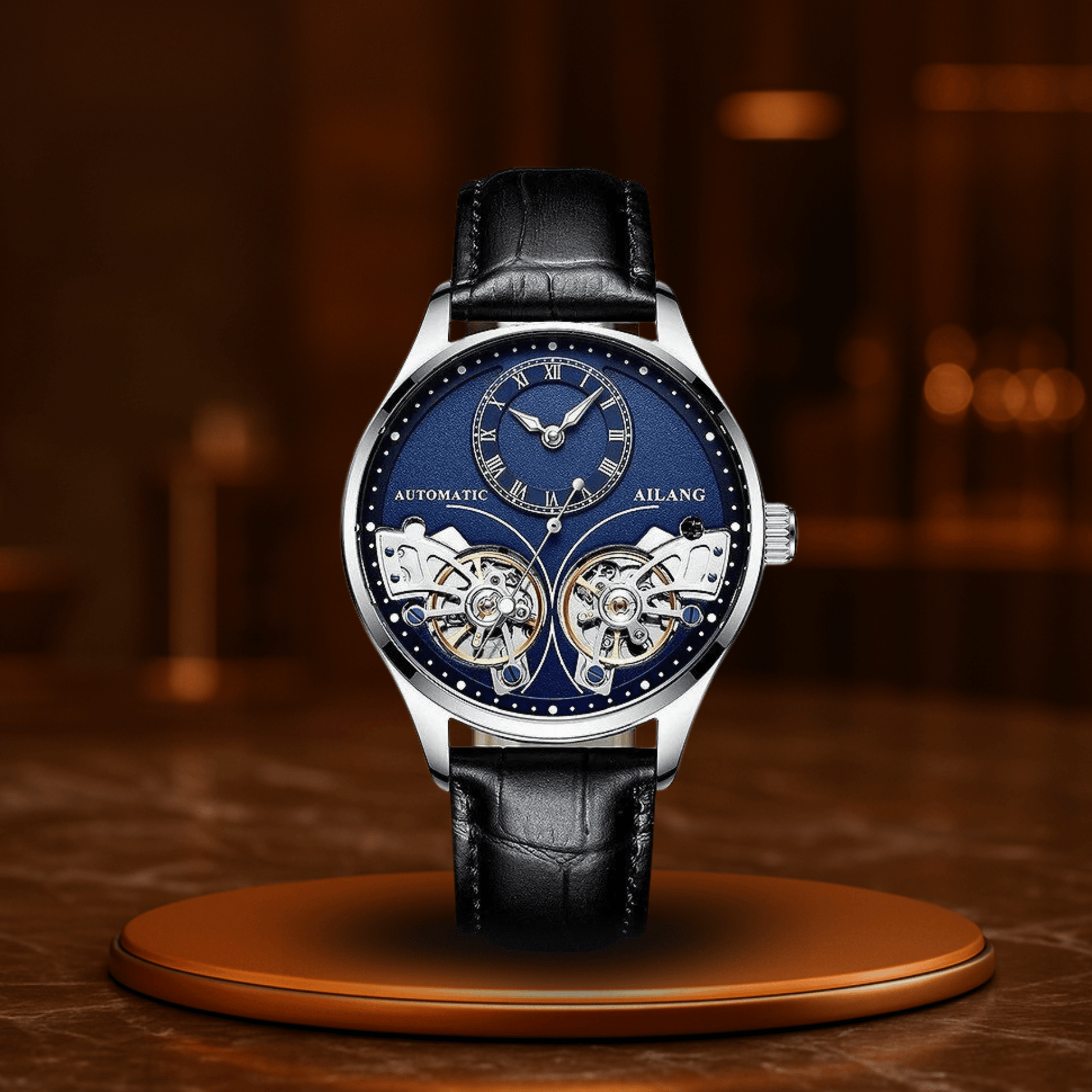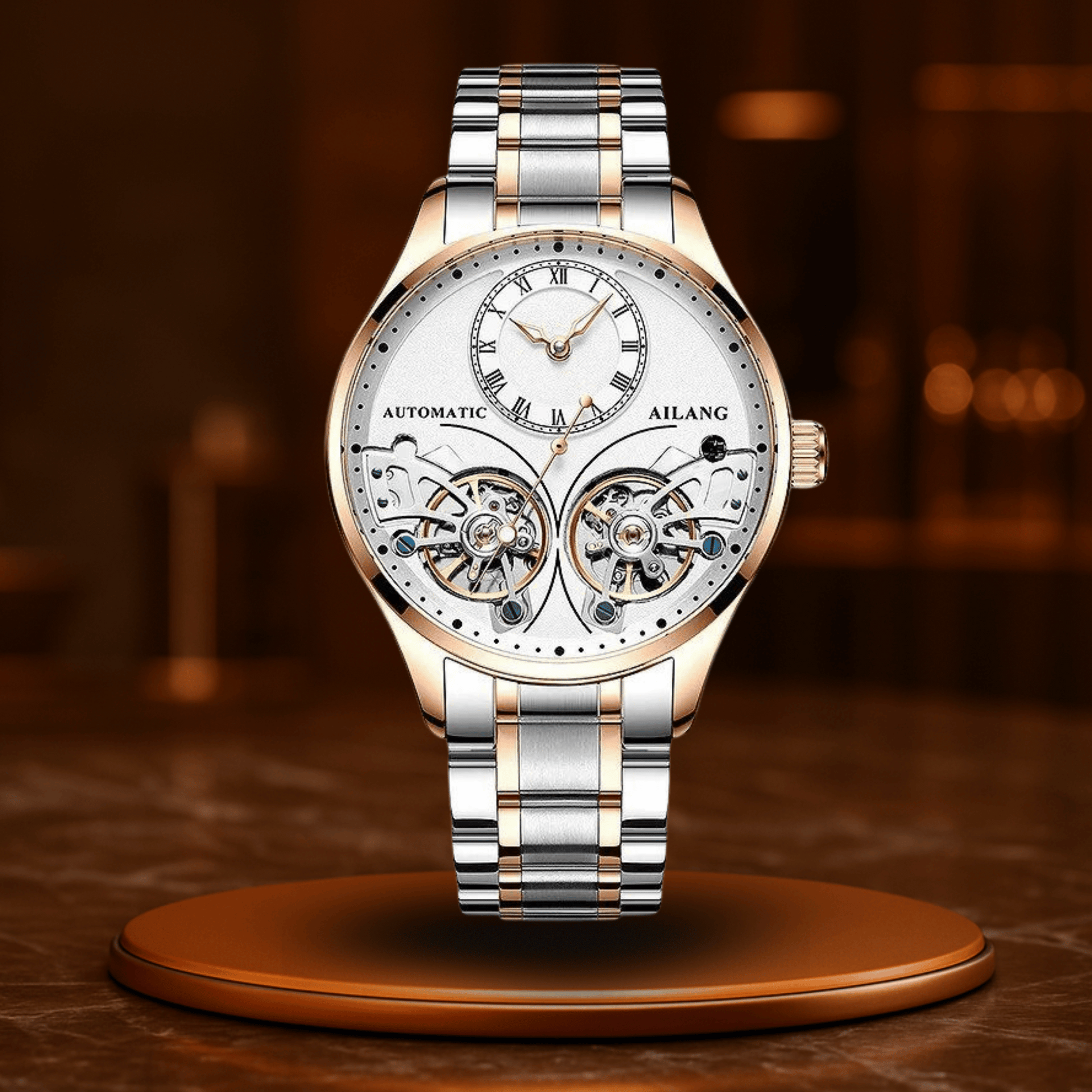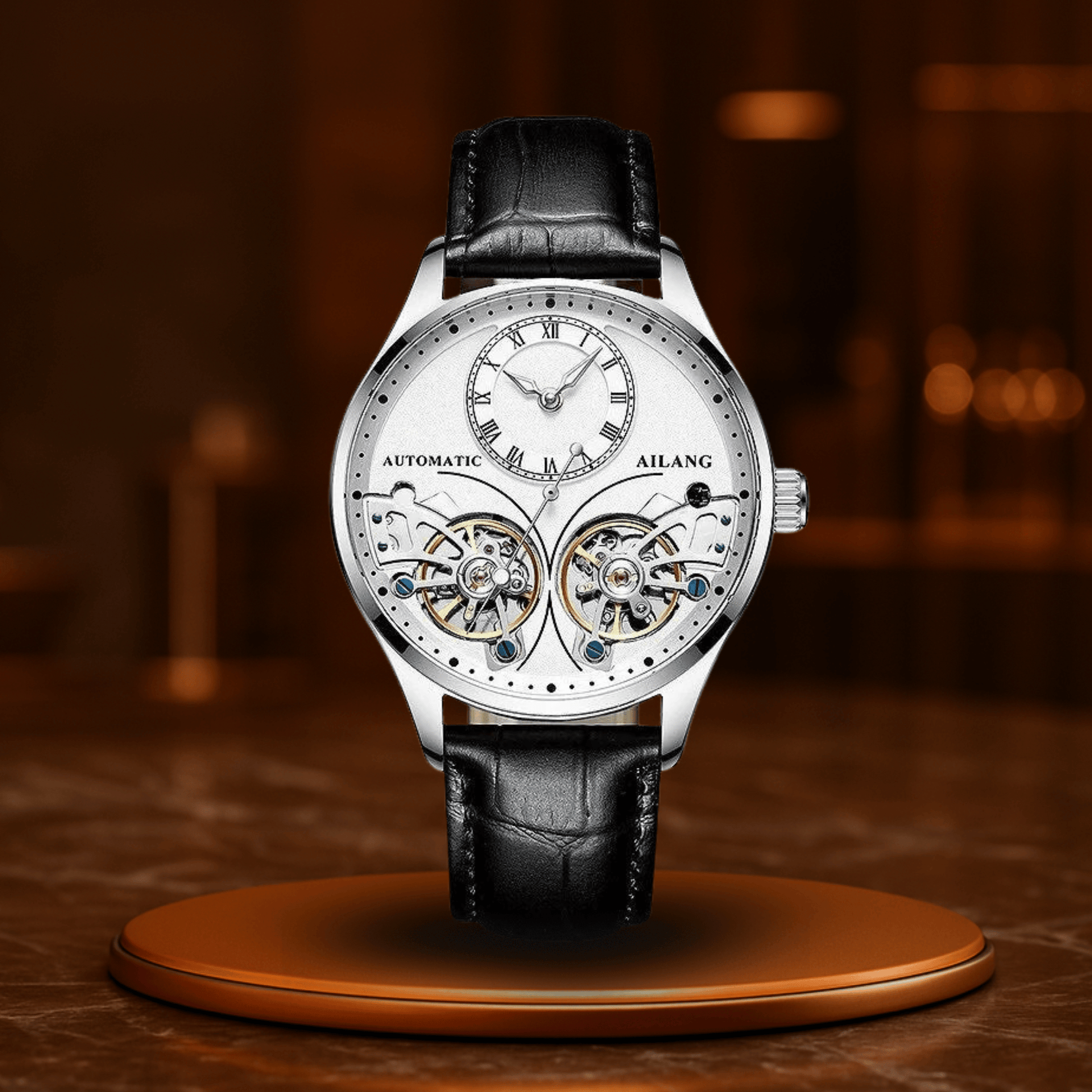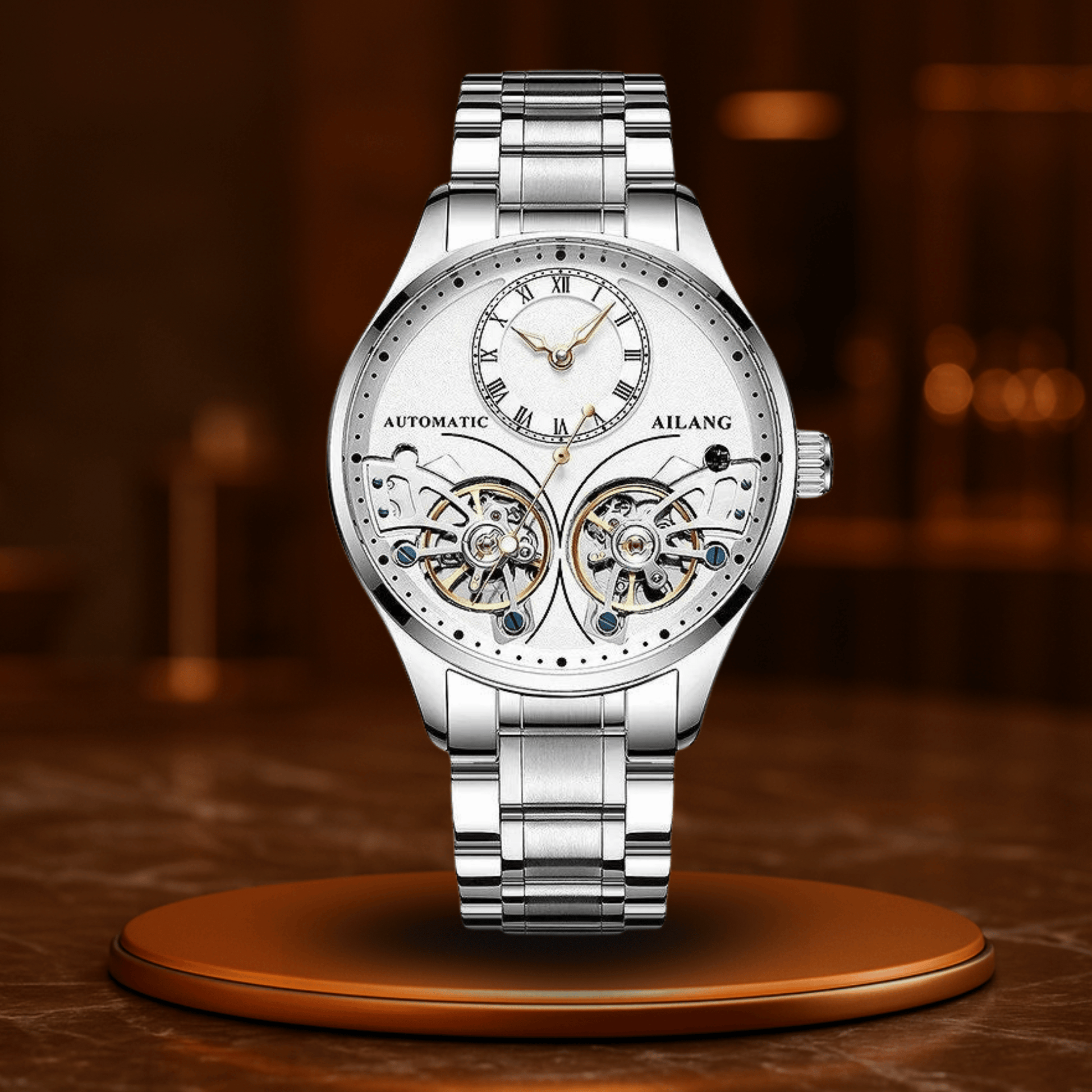 A double-balanced mechanical heartbeat, visible and hypnotic, powered by an automatic movement that draws solely on your energy. No winding. No battery. Only you – and time, passing in its most beautiful form.